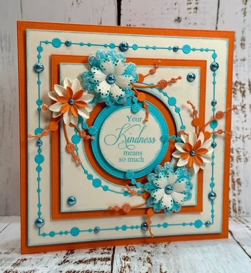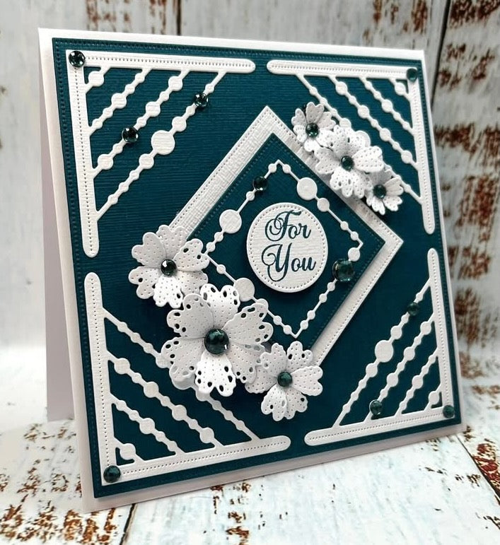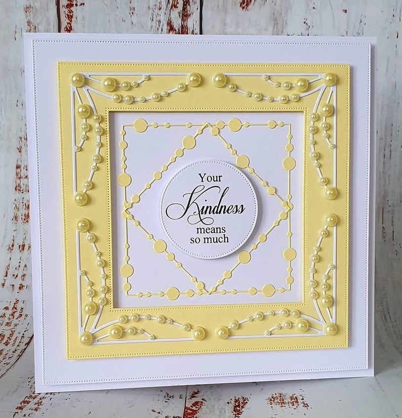 Easy to extend to use with larger dies, disguising join with pearls or gems or adding flowers.